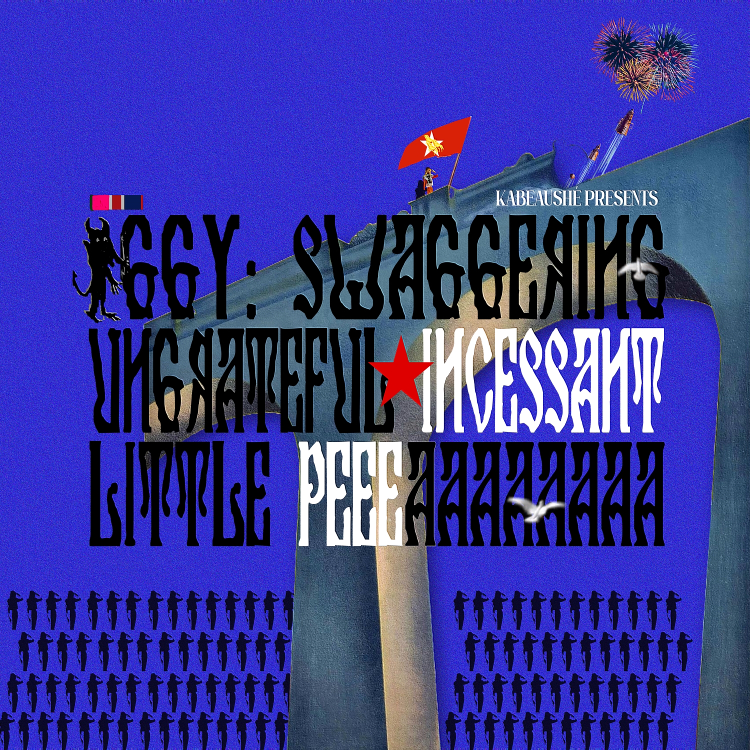 « Ça devrait piquer un peu les oreilles », sourit-il, chaleureux dans la conversation mais profondément en colère sur scène. Explorateur des notions de beauté, de douleur et d’identité, ce génie hyper créatif repousse les limites aussi loin que le titre de son troisième album : Kabeaushe Presents: Iggy Swaggering Ungrateful Incessant Little Peeeaaaaaaaa.